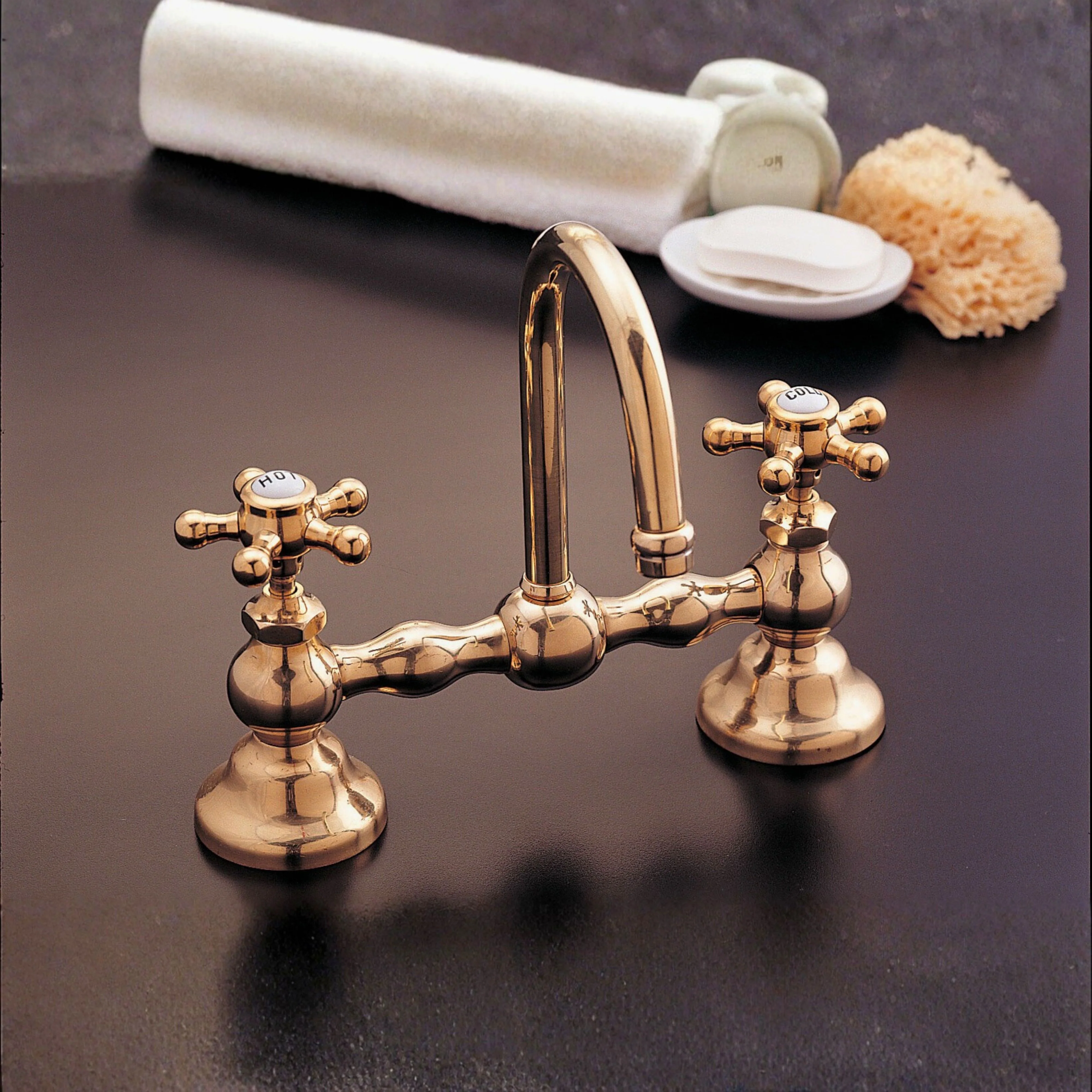 - Bridge lavatory faucet with high-arc gooseneck spout