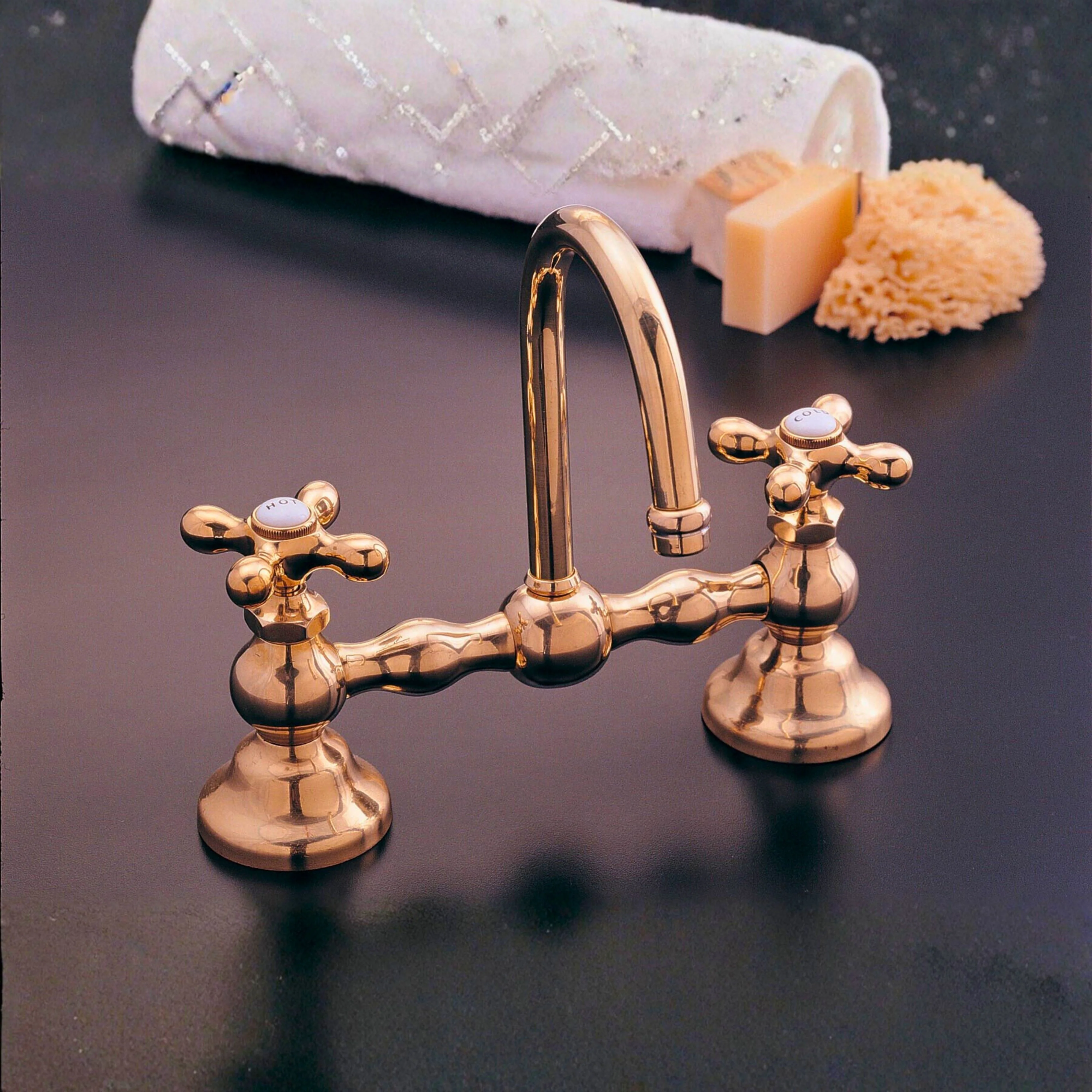 - Bridge-style faucet with elevated gooseneck spout for classic appeal