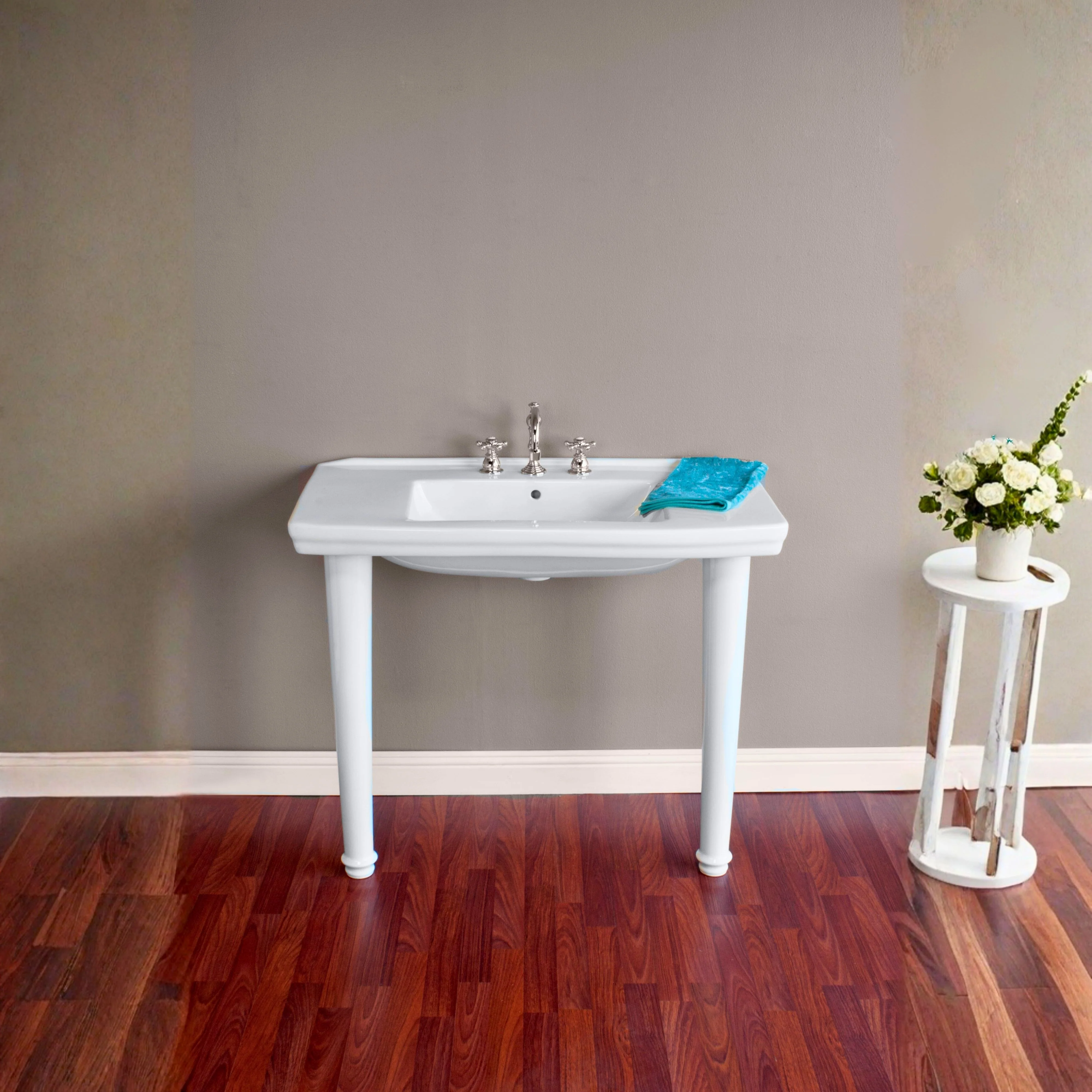 Fireclay Console Sink with Legs in White P1122 | Strom Living